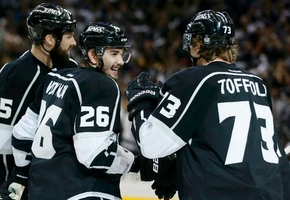 В Лос-Анджелесе состоялся третий матч финальной серии Западной Конференции, в котором "короли" принимали "Чикаго Блэк Хоукс". Как и ожидалось, в домашних стенах "Лос-Анджелес Кингз" одержал победу - 3:1 и сократил счет в серии 1:2. Эта победа стала уже восьмой в нынешнем розыгрыше плей-офф на родном льду, а главной звездой встречи стал 23-летний российский защитник Слава Войнов (на фото слева), который отдал одну голевую передачу и забросил победную шайбу в ворота "черных ястребов".