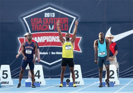 В преддверии чемпионата мира по легкой атлетике, который пройдет в Москве, великолепные результаты на чемпионате США показали американские спринтеры. В состязаниях мужчин в беге на 100 метров с лучшим результатом сезона в мире победил Тайсон Гэй - 9,75 секунд. Вторым стал Джастин Гэтлин - 9,89, третьим - Чарльз Сэлмон - 9,972, а четвертым - Майк Роджерс - 9,974. Тайсон Гэй (на фото в центре) и полуфинальный забег выиграл с результатом 9,75, но при сильном попутном ветре.