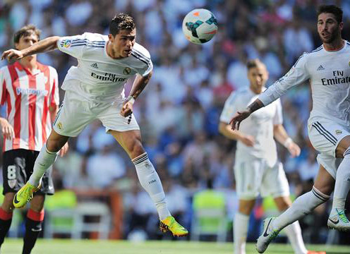 Мадридский «Реал» обыграл в родных стенах «Атлетик» из Бильбао. Мощным ударом головой на последних секундах первого тайма смог забить Криштиану Роналду (на фото), а дублем отметилась молодая звезда "Королевского клуба" – Иско, дважды превративший в гол передачи Карима Бензема, который с уходом своего вечного соперника в основе Гонсало Игуаина, начал показывать себя и как ассистент, и как исполнитель.