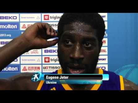В группе "А" сборная Великобритании в овертайме неожиданно обыграла сильную команду Израиля - 75:71, французы не менее сенсационно проиграли Германии - 74:80, а украинцы вырвали победу на последних секундах у Бельгии - 58:57. Бельгийцы вели по ходу почти всего матча, еще за семь минут до финальной сирены их преимущество достигало 8 очков. На препдпоследней минуты счет стал ничейным, а победу сборной Украины принес натурализованный игрок - 29-летний защитник Юджин Джетер (на фото). За 3 секунды до сирены он с фолом забил двухочковый бросок, а затем реализовал штрафной бросок, принеся победу сборной Украины - 58:57. Юджин Джетер, который является младшим братом знаменитой американской спринтерши Кармелиты Джетер, в 2006-2007 годах играл за клуб БК "Киев", а в 2010-2011 годах выступал за клуб НБА "Сакраменто Кингс". Самым результативным игроком матча стал Игорь Зайцев, набравший 16 очков. Герой матча - Юджин Джетер набрал 8 очков и сделал 3 результативные передачи.