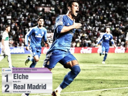 "Королевский" клуб вел в Эльче со счетом 1:0 после гола Криштиану Роналду. Но на 2-й минуте добавленного времени "Эльче" провел фланговую атаку, которую после навеса ударом головой замкнул Боакье. Мадридцы бросились забивать победный гол и на 5-й компенсированной минуте судья назначил пенальти. Решение было чрезвычайно спорным - при подаче с углового в борьбе с защитником в штрафной рухнул Пепе. Роналду реализовал пенальти, а судье пришлось отбиваться от игроков и тренеров "Эльче", которые энергично требовали объяснений.