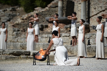 В Древней Олимпии зажжен Олимпийский огонь зимних Игр в Сочи 2014 года. Официальная церемония зажжения Огня от лучей Солнца прошла в храме Геры. Огонь был зажжен с помощью параболического зеркала от лучей солнца. Роль верховной жрицы исполнила греческая актриса Ино Менегаки.