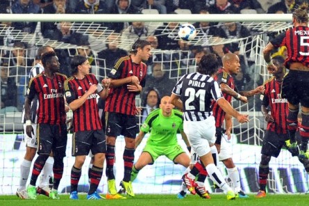 Секундная стрелка стадиона "Ювентус" не успела завершить первый оборот, когда "Милан" открыл счет - Антонио Ночерино прострелил в штрафную, где удачно подставил ногу Салли Мунтари. "Ювентус" отрехнулся от легкой встряски и вскоре прибрал игру к своим рукам. На 15-й минуте Андреа Пирло исполнил филигранный удар со штрафного (на фото), сравняв счет. После перерыва туринцы перевели преимущество в качество, еще дважды поразив ворота Кристиана Аббьяти. На 69-й минуте отлично пробил Себастьян Джовинко, а затем Джорджио Кьяллини добил мяч в сетку после выстрела Пирло в перекладину. На исходе встречи Мунтари "подсластил пилюлю" - 2:3, но после семи туров "Милан" окопался во второй половине таблицы, имея только 8 очков.