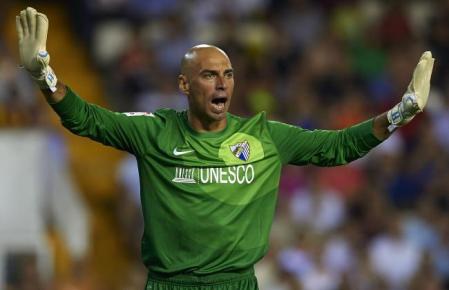 Осечками лидеров воспользовался мадридский "Реал", который принудил к капитуляции "Малагу" - 2:0. Аргентинский голкипер "Малаги" Вильфредо Кабальеро (на фото) творил чудеса, раз за разом спасая свои ворота. Мадридцы создали такое количество голевых моментов, что хватило бы на весь 9-й тур, но Кабальеро "тащил" все мячи. Гол в ворота "Малаги" стал несчастным случаем - навес Анхеля Ди Марии в штрафную на Криштиану Рональду до португальца не долетел, опустившись в сетку ворот. "Реал" продолжил натиск, но в рамке был вездесущий аргентинец. Только в добавленное время Криштиану Рональду смог с пенальти заставить во второй раз капитулировать Вилли Кабальеро. Теперь "Реал" отстает от "Атлетико" на 2 очка, а от "Барселоны" - на 3 очка.