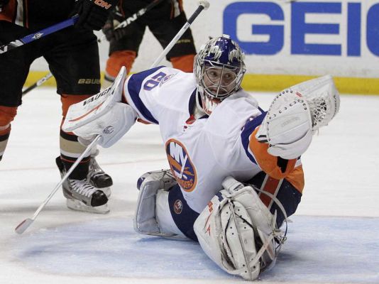 Тройную победу одержали российские голкиперы - Евгений Набоков (на фото, "Айлендерс") из 42-х бросков отразил 39 и "Островитяне" обыграли "Питтсбург Пингвинз" на выезде - 4:3 (голы: Мэтт Моулсон, Франс Нильсен, Пьер-Марк Бушар, Джош Бэйли (все - "Айлендерс"), Юсси Йокинен, Сидни Кросби и Дерик Энгелланд (все - "Питтсбург").