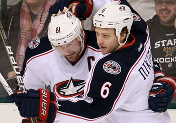Никита Никитин (на фото справа) поучаствовал и в первой шайбе "Блю Джекетс", которую с его передачи забросил Ник Фолиньо на 10-й минуте. На 44-й минуте "Флеймз" сравняли счет после броска Джо Колборна. Голкипер "Коламбуса" Сергей Бобровский отразил 23 броска из 24-х.