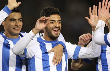 Наиболее драматично прошел матч в Сан-Себастьяне, где "Реал Сосьедад" принимал "Сельту" из Виго. К перерыву гости вели 3:1, но во втором тайме мексиканский нападающий сан-себастьянцев Карлос Вела (на фото в центре) забил три мяча, добыв победу "Реал Сосьедаду" - 4:3. 24-летний форвард сделал первый "покер", четырежды поразив ворота "Сельты"!