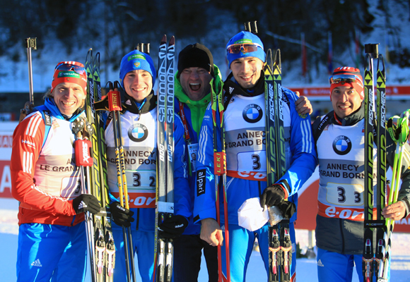 13 декабря во французском Анси в рамках третьего этапа Кубка мира состоялась мужская эстафета. Свою первую победу в сезоне одержала сборная России, с великолепным финишным спуртм опередившая на последниъ метрах дистанции команду Франции, а "бронза" в этой гонке досталась австрийцам.