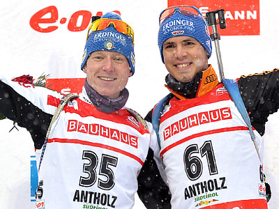 Единственным отличием в их результате лидеров стало то, что немецкий биатлонист поразил все мишени, а итальянский - допустил на стрельбище одну ошибку. "Бронза" досталась ещё одному представителю Германии - Арнду Пайфферу, а вот российские биатлонисты не порадовали. Лучшим из них стал Антон Шипулин, завершивший гонку на 14-месте, но по решению тренерского состава он не выйдет на гонку преследования. 16-м по итогам спринта стартует в ней Тимофей Лапшин, проигрывающий лидеру 59,5 сеунд. 29-м со старта уйдёт Евгений Гараничев, 40-м - Алексей Слепов, а 49-м - Андрей Маковеев. Александр Логинов, закрывший в спринтерской гонке лишь половину мишеней (5 из 10), показал 62-й результат и не отобрался в преследование.