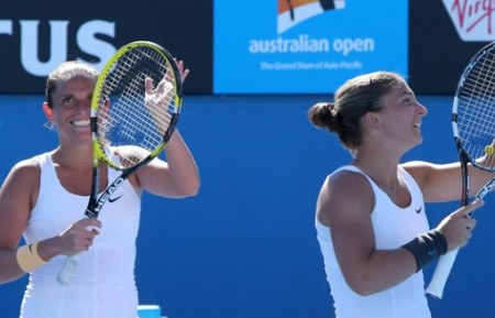 Лучшая женская пара мира - итальянки Сара Эррани и Роберта Винчи (на фото) - стали победительницами открытого чемпионата Австралии, обыграв в финале россиянок Елену Веснину и Екатерину Макарову - 6:4, 3:6, 7:5. Стоит отметить, что Эррани и Винчи в решающем сете уступали со счетом 2:5, но смогли выиграть пять геймов подряд.