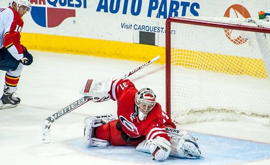 И во встрече с "Сент-Луис Блюз", который идет на третьем месте в Западной конференции, Худобин и Семин были на виду - первый стал второй звездой матча, отразив 27 бросков из 28, а Семин поразил пустые ворота "Блюз" за 64 секунды до сирены. "Харрикейнс" добился победы со счетом 3:1 (голы: Нэтан Джерби, Джефф Скиннер (оба - "Каролина"), Дэвид Бэйкс ("Сент-Луис"). Интересно отметить, что Антон Худобин (на фото) занимает 16-е место среди всех вратарей Лиги, пропуская в среднем за игру 2,16 шайбы, но в состав олимпийской сборной России приглашения не получил (показатели олипиоников - Семен Варламов пропускает за матч 2,47 шайбы (31-е место), а Сергей Бобровский и вовсе 2,59 шайбы (36-39-е места среди 81 кипера НХЛ).