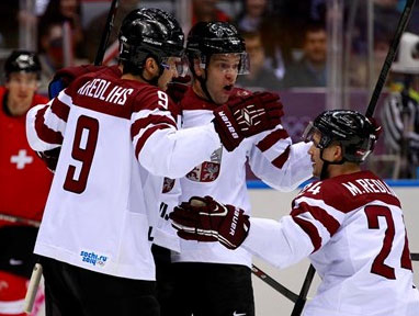 Если три первых матча завершились победами команд, занявших по итогам группового турнира более высокие места, то в поединке Швейцарии и Латвии успеха добилась предпоследняя команда первой стадии. Счёт в этом матче был открыт на девятой минуте, когда Бартулис завершил комбинацию с участием Даугавиньша и Гиргенсонса. Прошло менее трёх минут и латвийская команда, реализовав большинство, удвоила преимущество - Дарзиньш, получив пас от Редлихса с нескольких метров послал шайбу за спину голкиперу швейцарцев Хиллеру. Вице-чемпионы мира бросились в атаку, пытаясь доказать себе и зрителям, что всё это не более чем случайность, но за два периода смогли лишь один раз огорчить голкипера сборной Латвии Эдгара Масальского, который отразил 32 из 33 бросков соперника. Случилось это на 35-й минуте, когда отличился Плюсс. Когда же тренер команды Швейцарии за полторы минуты до финальной сирены сменил вратаря на шестого полевого игрока, его команда получила третий гол в свои ворота. Дарзиньш с передачи Павлова вышел на пустой створ и ровно за минуту до окончания матча установил итоговый счёт - 3:1 в пользу Латвии, которая впервые в своей истории попала в восьмерку лучших команд Олимпиады. Теперь ей 19 февраля предстоит проверить свои силы в поединке с одним из главных фаворитов турнира - командой Канады.