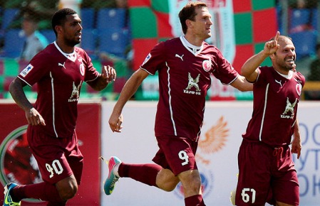 Московский "Локомотив" благодаря дублю Романа Павлюченко выиграл у "Терека" - 2:1 и лишь одно очко уступает питерцам в борьбе за "золото". Московский ЦСКА уверенно разобрался с "Кубанью" - 4:0, "Урал" в Перми переиграл "Амкар" - 2:0, "Динамо" проиграло "Краснодару" - 1:2, а "Спартак" в Казани уступил "Рубину" - 1:2. Победный гол в ворота москвичей на 92-й минуте забил бывший воспитанник "Спартака" Александр Прудников (на фото в центре).