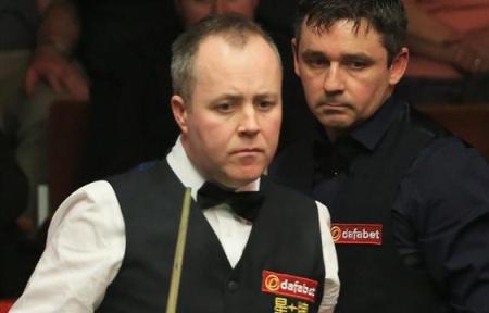 Шотландец Джон Хиггинс (на фото слева), который становился чемпионом мира в 1998, 2007, 2009 и 2011 годах, в первом раунде проиграл своему соотечественнику Алану МакМанусу (на фото справа) со счетом 7:10.