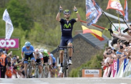 Испанский гонщик команды Movistar Алехандро Вальверде (на фото) одержал вторую в карьере победу на классике "Флеш Валлонь" (первая в 2006 году).