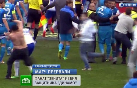 Матч петербургского "Зенита" против московского "Динамо" был сорван болельщиками сине-бело-голубых. На 86-й минуте игры при счете 2:4 в пользу столичного клуба около 500 фанатов петербургского клуба выбежали на газон, а один из "болельщиков" нанес удар в лицо защитнику "Динамо" Владимиру Гранату. Футболисты, тренеры и судьи покинули поле и направились в раздевалку, после чего арбитр встречи решил не продолжать встречу, так как обеспечить безопастность на стадионе оказалось невозможным "Зениту" в любом случае будет засчитано поражение - либо техническое со счетом 0:3, либо фактическое - 2:4.