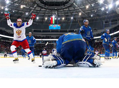 Российская сборная на нынешнем чемпионате выглядит явным фаворитом. Ни одна другая команда не переигрывает соперников настолько уверенно. Если же учесть, что в трёх стартовых турах россияне не просто выиграли у трёх основных своих конкурентов, а забросили в их ворота 15 шайб, то участь несколько лет балансирующей между первым и высшим дивизионом сборной Казахстана выглядела очень незавидно. Однако сначала записные аутсайдеры смогли отбить фирменный для нынешнего чемпионата стартовый спурт россиян, а затем почти целый период сохраняли свои ворота в неприкосновенности.