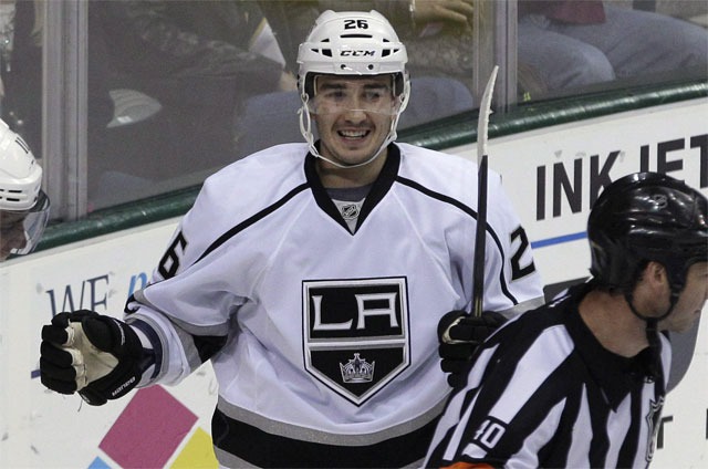 Первый период встречи остался за гостями из Чикаго, у которых дважды отличился капитан команды Джонатан Тэйвз, причем первая шайба была забита когда "Блэк Хоукс" остались в меньшинстве. Правда, удалением Михала Хандзуса успели воспользоваться и "Короли" - спутся 50 секунд после гола Тэйвза защитник "Кингз" Слава Войнов (на фото) сравнял счет. Вторую шайбу Тэйвз забросил на 14-й минуте, когда команды играли в равных составах.