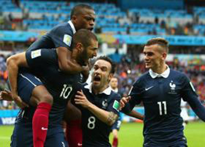 В четвёртый день футбольного чемпионата мира-2014, 15 июня, сборная Франции выиграла со счётом 3:0 у Гондураса и возглавила турнирную таблицу группы Е, опережая по разнице мячей команду Швейцарии, переигравшую несколькими часами ранее Эквадор (2:1).