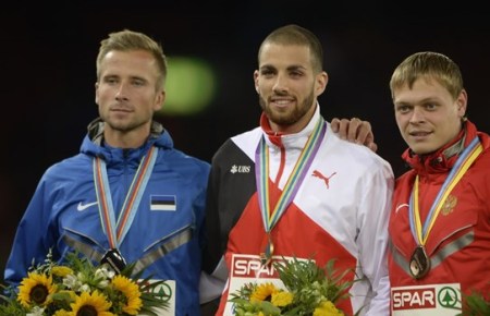 Чемпионом Европы, к радости местных болельщиков, стал швейцарец Карим Хуссейн (на фото в центре), а третьим финишировал россиянин Денис Кудрявцев (на фото справа).