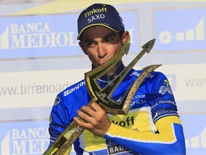 Новым лидером "Вуэльты" стал испанец Альберто Контадор (на фото) из "Тинькофф-Саксо". Второе место занимает испанец Алехандро Вальверде ("Мовистар"), проигрывающий Контадору 27 секунд, а на третье место поднялся Ригоберто Уран (+0.59).