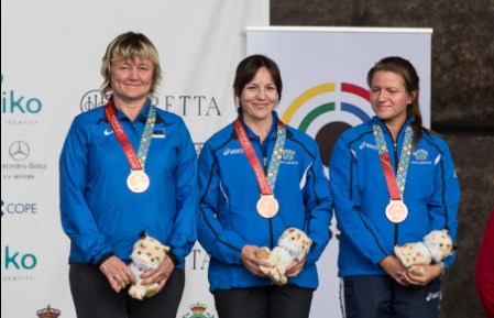 В испанской Гранаде продолжается 51-й чемпионат мира по стрельбе. Впервые в истории командную медаль выиграла женская сборная Эстонии в составе Анжелы Вороновой, Людмилы Корчагиной и Елены Поташевой (на фото слева направо). В командном турнире в стрельбе из малокалиберной винтовки из трех положений с дистанции 300 метров наши спортсменки набрали 1698 очков. "Золото" выиграла команда Польши - 1717 очков, а вторыми стали швейцарки - 1707 очков.