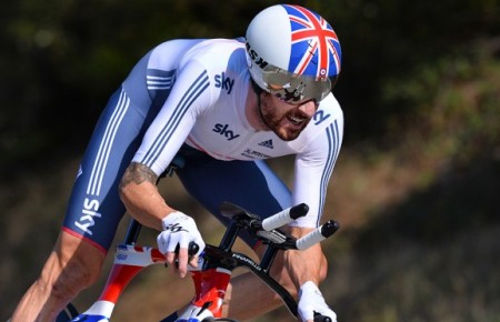 Британский велогонщик Брэдли Уиггинс (на фото) выиграл "золото" чемпионата мира, обыграв в гонке с раздельного старта главного фаворита, трехкратного чемпиона мира Тони Мартина (Германия).