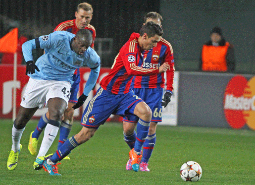 В группе Е московский ЦСКА, пропустив в первой половине игры два гола от чемпиона Англии в составе которого отличились Сергио Агуэро и Джеймс Милнер, усилиями вышедшего на замену ивуарийца Сейду Думбии смог вырвать первое очко в нынешнем турнире. Появившись на поле с первых минут второго тайма он сначала сам на 65-й минуте превратил в гол прострел Мусы вдоль ворот "Манчестер Сити", а на 86-й минуте заработал пенальти, который реализовал Натхо, установив итоговый счёт матча - 2:2.