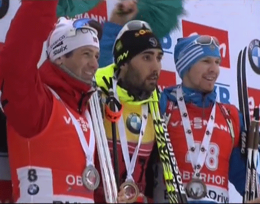 Второе место в задержанной более чем на два часа из-за погодных условий гонке досталось "Королю биатлона" Уле-Эйнару Бьорндалену, который остался в 4,4 секундах от своей 95-й победы на этапах биатлонного Кубка мира, но впервые в нынешнем сезоне поднялся на пьедестал почёта.