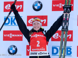 В итальянской Антерсельве, где продолжается шестой этап Кубка мира по биатлону, 23 января женскую спринтерскую гонку выиграла белоруска Дарья Домрачева, преодолевшая дистанцию в 7,5 километров за 19 минут 57,8 секунды.