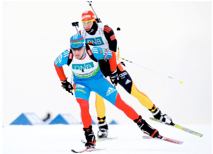 Первым в спринте стал именно Гараничев. Однако его преимущество, в отличии от Нойнер в женской гонке, было чисто символическим - он ушел на дистанцию лишь на 0,7 секунды раньше немецкого биатлониста Арнда Пайффера.
