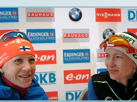 После первой гонки восьмого этапа разрыв между лидерами общего зачёта Кубка мира увеличился до 33 очков. У Мякяряйнен - 810 баллов, а у Домрачевой - 777.