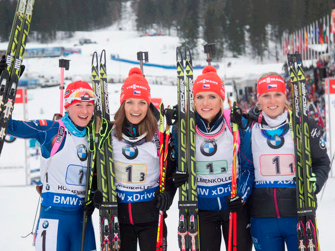 Преодолев четыре этапа по 6 километров за 1 час 11 минут 10,6 секунды спортсменки из Чехии не только, опередив на 28,3 секунды итальянок, выиграли третью в сезоне эстафету, но и близки к успеху в борьбе за эстафетный Кубка мира. Перед последней гонкой, которая пройдёт в рамках чемпионата мира по биатлону в финском Контиолахти они имеют в своём активе 282 балла, опережая ближайших преследовательниц, каковыми являются немки, на 40 баллов.