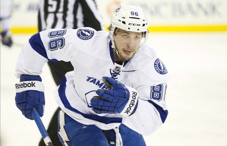 "Тампа-Бэй Лайтнинг" стала первой командой, которая провела в нынешнем сезоне 60 матчей в регулярном чемпионате НХЛ. В очередной встрече "Молнии" на выезде обыграли вторую команду Западной конференции - "Анахайм Дакс" - 4:1. "Утки" вели в счете после первого периода 1:0 (шайбу забросил Патрик Мароон), но во второй двадцатиминутке Антон Стральман, Тайлер Джонсон, Никита Кучеров (на фото) и Стивен Стэмкос по разу поразили ворота Джона Гибсона, одержав 36-ю победу в сезоне.