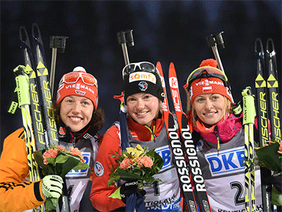 1. (1) Мари Дорен-Абер (Франция) 30:07.7 +0.0 (0+0+2+1)