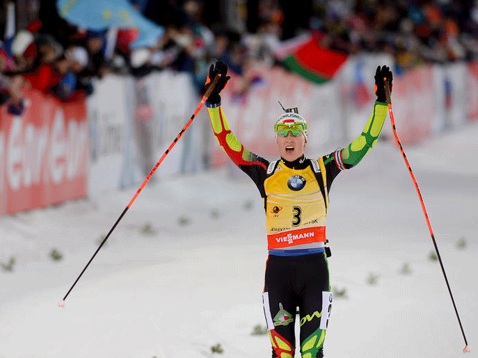 В российском Ханты-Мансийске, где проходит девятый последний этап Кубка мира по биатлону сезона 2014/15 годов, 21 марта гонку преследования выиграла лидер общего зачёта Дарья Домрачева, которая по итогам спринта ушла на дистанцию третьей и с одним штрафным кругом преодолела 10-километровую дистанцию за 28 минут 14,4 секунды.