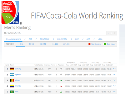 Полностью рейтинг мировых футбольных сборных можно посмотреть на сайте ФИФА.