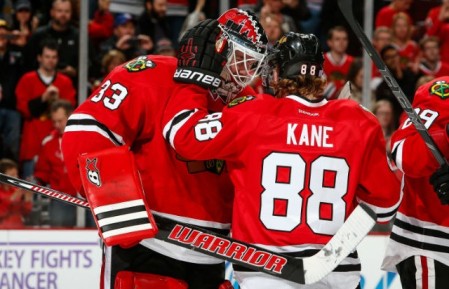 Стать героем дня было суждено другому резервисту - 26-летнему вратарю "Чикаго Блэк Хоукс" Скотту Дарлингу, который в карьере провел только 14 игр в НХЛ, а опыта плей-офф и вовсе не имел. Когда хоккеисты "Нэшвилл Предаторз" в начале второго периода увидели в рамке ворот гостей Дарлинга, то, видимо, решили что "Ястребы" выбросили белый флаг. В первом периоде "Хищники" трижды пробили основного вратаря "Чикаго" Кори Кроуфорда (дважды отличился Колин Уилсон, еще одну шайбу провел Виктор Сталберг), а "Ястребы" горели 0:3. Однако, именно Скотт Дарлинг (на фото слева), отразив все 42 броска по своим воротам, стал героем встречи и первой звездой всего игрового дня, а хоккеисты "Чикаго", воодушевленные игрой новичка, забросили четыре шайбы, вырвав победу во втором овертайме - 4:3. Авторами заброшенных шайб стали Никлас Хьялмарссон, Патрик Шарп, Джонатан Тэйвз и Данкан Кит.