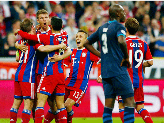 Тьяго Алькантара, 14 (1:0). Жером Боатенг, 21 (2:0). Роберт Левандовски, 27 (3:0). Томас Мюллер, 36 (4:0). Роберт Левандовски, 40 (5:0). Джексон Мартинес, 73 (5:1). Хаби Алонсо, 88 (6:1).