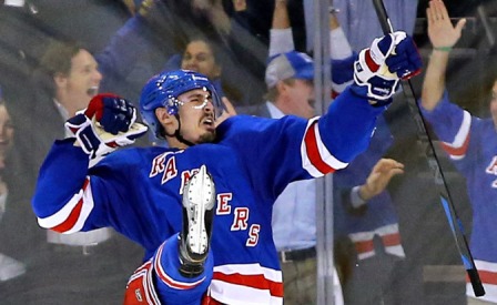 Матчем нереализованных возможностей для "Столичных" стал второй поединок в нью-йоркском "Мэдисон-Сквер-Гардене" с "Рейнджерами Нью-Йорка". Уже на первой минуте хозяева воспользовались ошибкой голкипера "Кэпиталз" Брэйдена Холтби и полевых игроков Джона Карлсона и Джоэля Уорда. Холтби неудачно отбил шайбу, пущенную из зоны "Рейнджерс", а Карлсон с Уордом не доработали в обороне. В итоге Холтби парировал бросок Йеспера Фаста в угол, но шайба отскочила на пятак, где, оставленный в одиночестве, Крис Крейдер (на фото) беспрепятственно переправил ее в ворота.