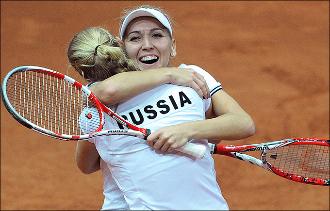 В полуфинальном поединке травяного турнира "Большого шлема" они в трех сетах нанесли поражение француженке Кристине Младенович и венгерке Тимеа Бабош - 6:4, 4:6, 6:4. За 2 часа 3 минуты матча Елена и Екатерина сделали пять эйсов и шесть брейков, один раз ошибившись при подаче.