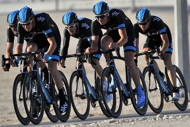 Американская команда "BMC" выиграла командную "разделку", британская "Sky" (на фото) стала второй, российская команда "Tinkoff-Saxo" - 4-й, "Астана" - 5-й, а "Катюша" - 19-й.